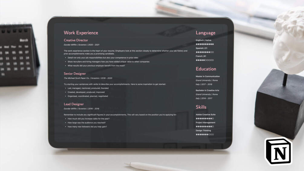 Professional Resume & CV Template | Digital 2022 Aesthetic Notion Template