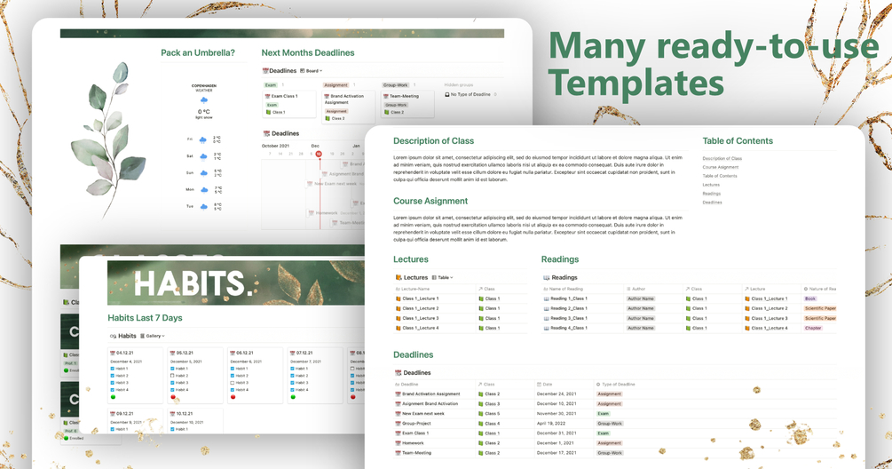 Studying at University can be complicated enough. This Notion-Template is your loyal companion to help organising your academic life.